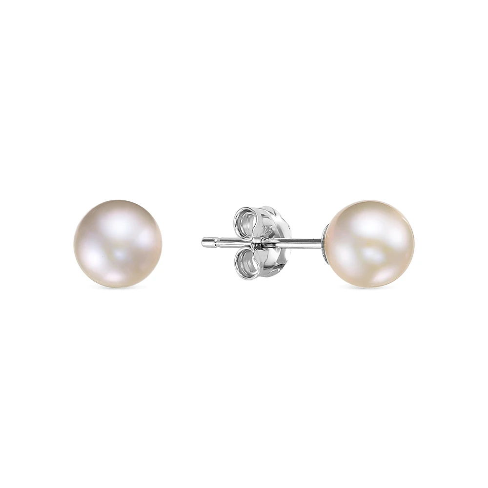 Пусеты из серебра 925 пробы с серебристыми речными жемчужинами 6-6,5 мм, (7276)