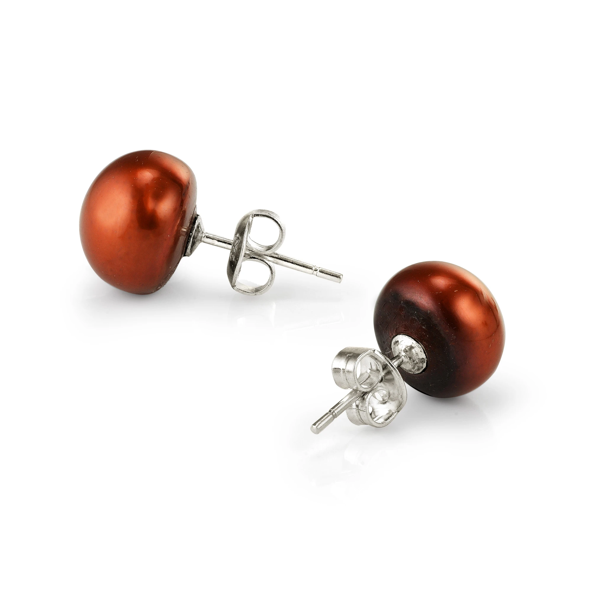 Пусеты из серебра 925 пробы украшены шоколадными пресноводными жемчужинами.