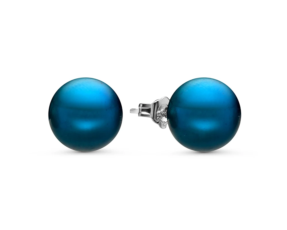 Пусеты из серебра 925 пробы украшены синими пресноводными жемчужинами.