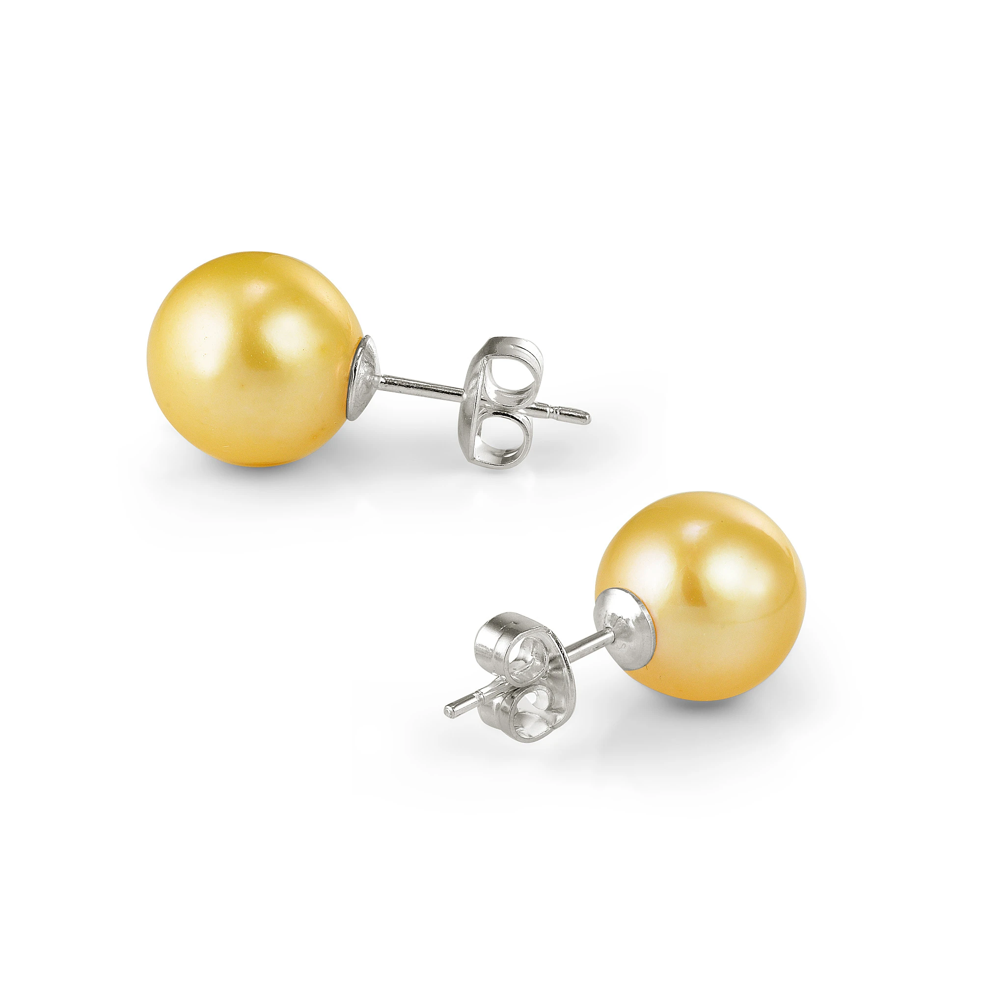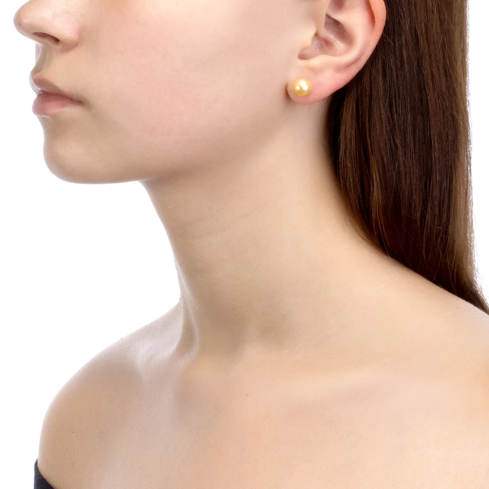 Пусеты из серебра 925 пробы украшены золотистыми пресноводными жемчужинами.