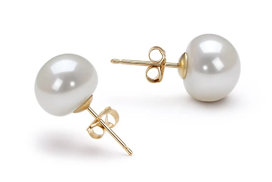 Качество жемчужин на пусетах наивысшее, жемчужины имеют очень яркий перламутровый блеск, поверхность с минимальным количеством природных дефектов, форма жемчужин сплющенная (пуговица).