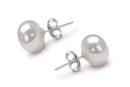 Пусеты из серебра 925 пробы украшены белыми пресноводными жемчужинами.