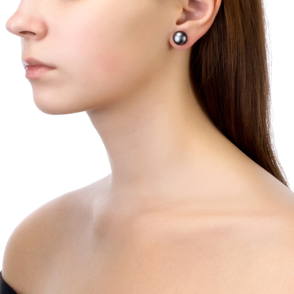 В наличии есть пусеты с жемчужинами различных оттенков черного цвета.