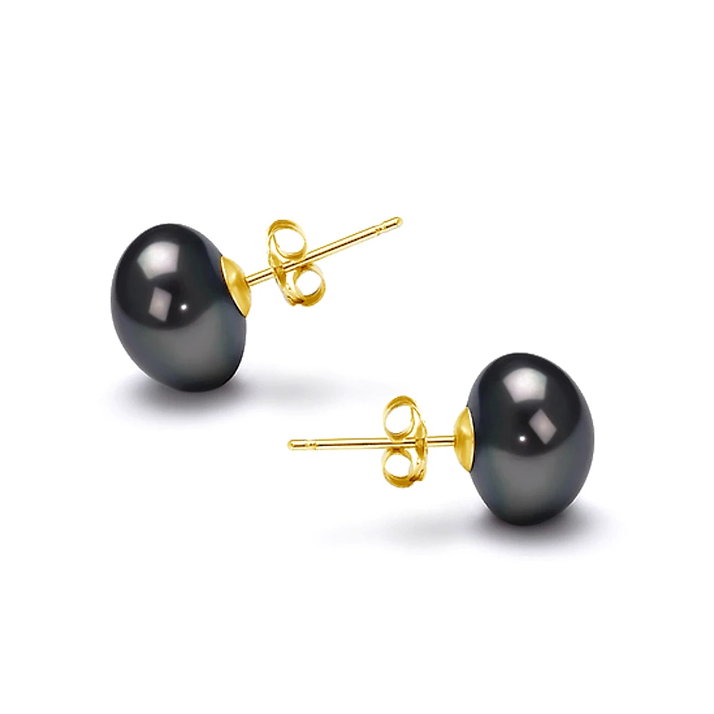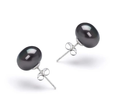 В наличии есть пусеты с жемчужинами различных оттенков черного цвета.