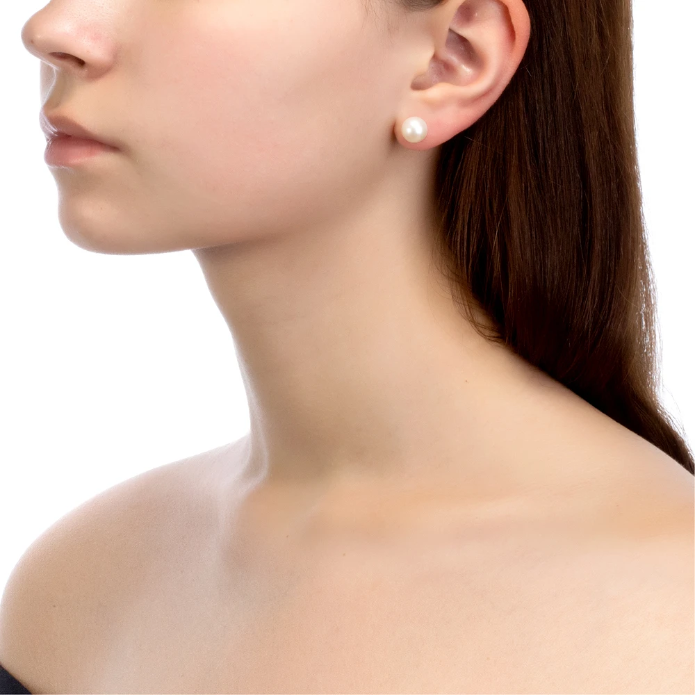 Пусеты из серебра 925 пробы украшены белыми пресноводными жемчужинами.
