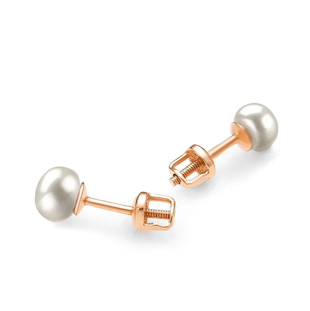 Пусеты из серебра 925 пробы украшены белыми пресноводными жемчужинами.
