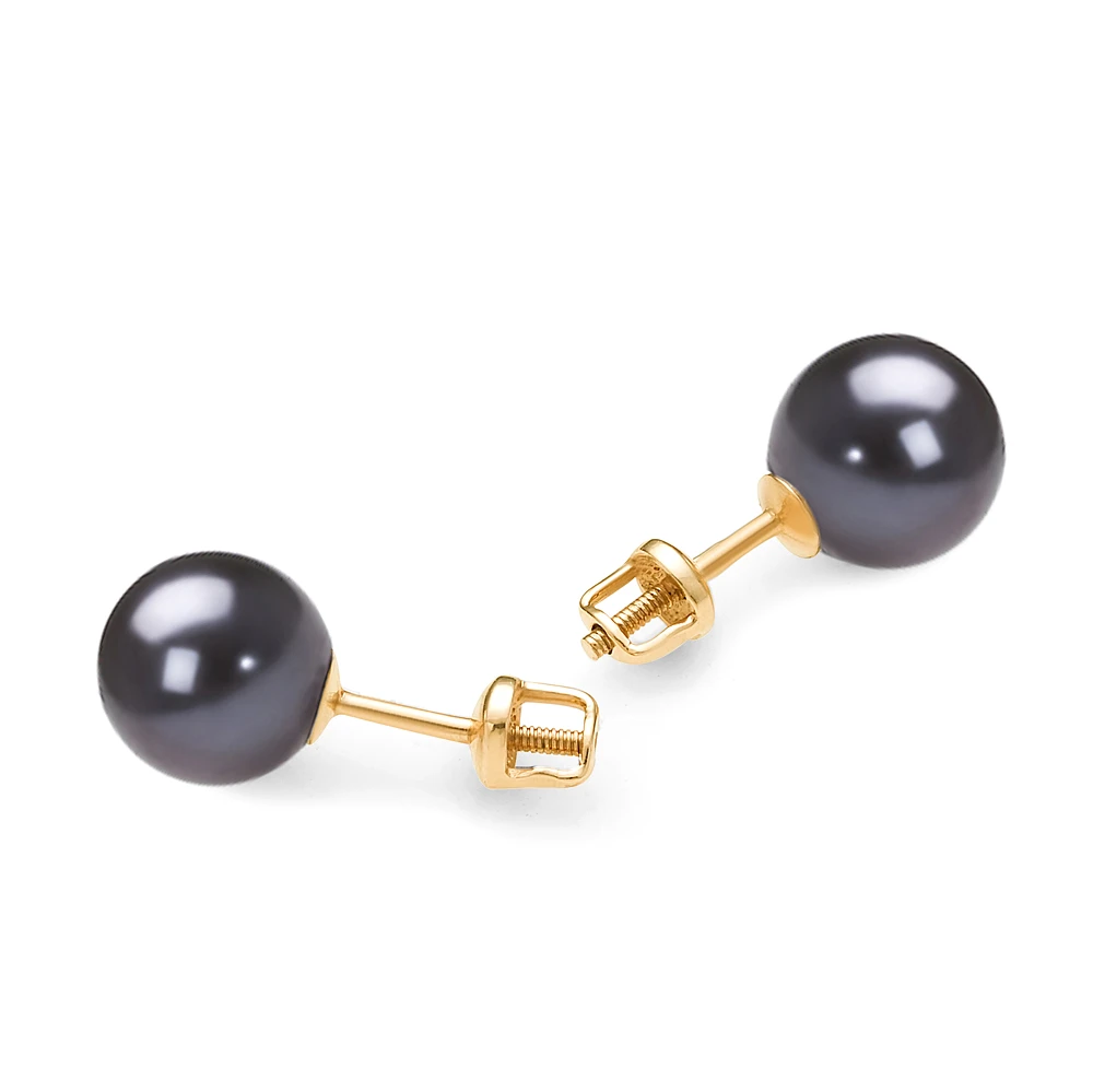 В наличии есть пусеты с жемчужинами различных оттенков черного цвета.
