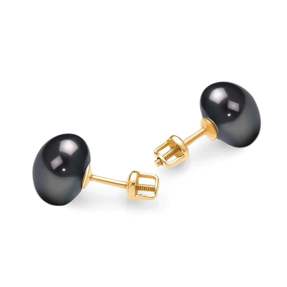В наличии есть пусеты с жемчужинами различных оттенков черного цвета.