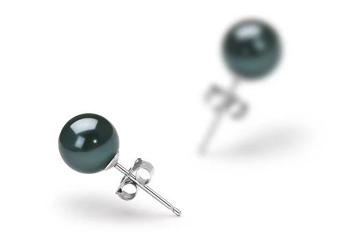 Пусеты из золота 585 пробы с черными морскими жемчужинами Акойя 7,5-8 мм, (603)