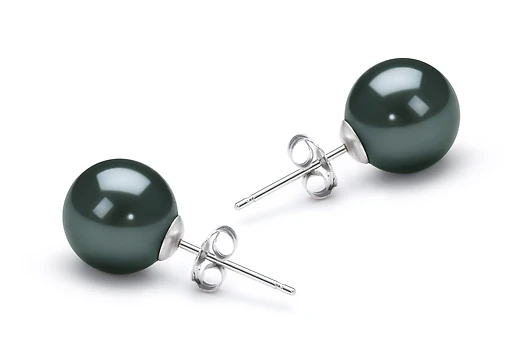Пусеты из золота 585 пробы с черными морскими жемчужинами Акойя 8-8,5 мм, (606)