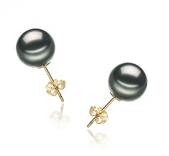 Пусеты из золота 585 пробы с черными морскими Таитянскими жемчужинами 9-9,5 мм, (3183)