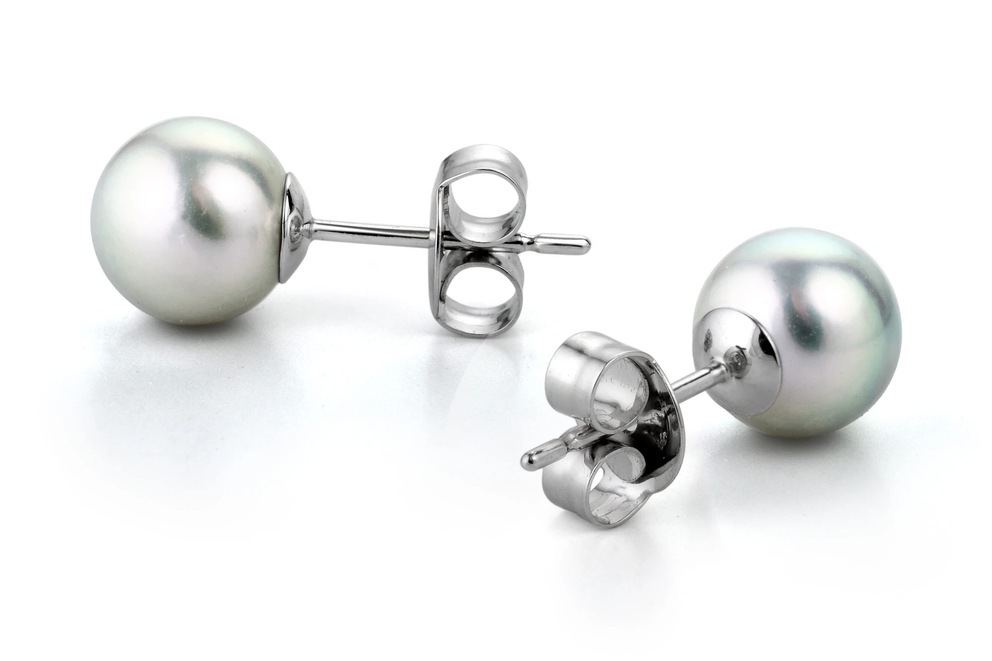 Пусеты из золота 585 пробы с серебристыми морскими жемчужинами Акойя 8,5-9 мм, (2256)
