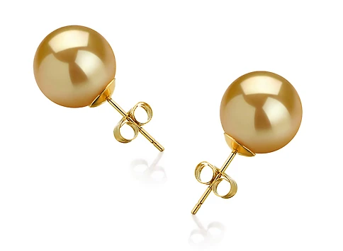 Пусеты из золота 585 пробы с золотистыми морскими жемчужинами Акойя 8-8,5 мм, (1531)
