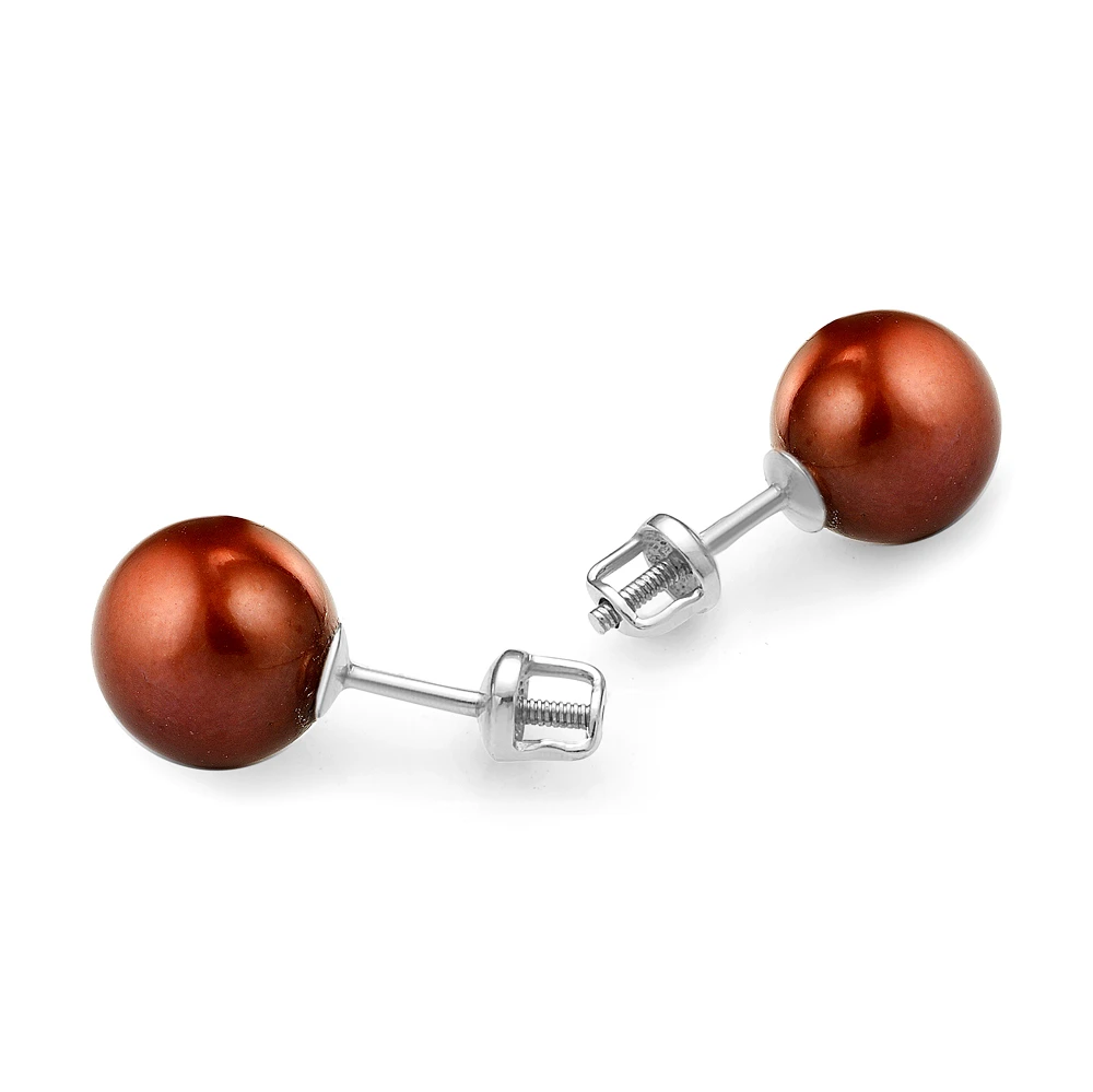 Пусеты из белого серебра 925 пробы украшены шоколадными пресноводными жемчужинами.