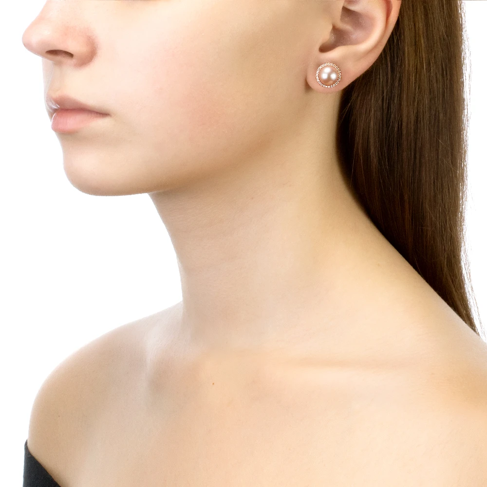 Серьги-гвоздики из серебра с розовыми речными жемчужинами 8,5-9 мм, (1168)