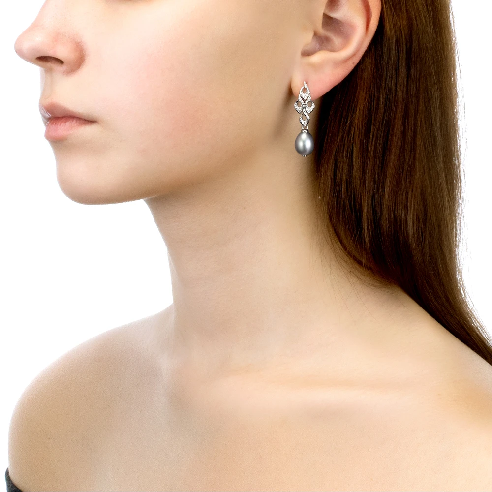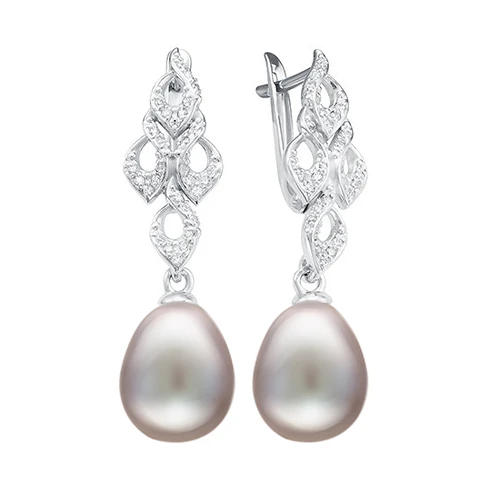 Серьги из серебра 925 пробы украшены серебристыми жемчужинами пресной воды. Качество жемчужин на серьгах наивысшее, жемчужины имеют очень яркий перламутровый блеск, поверхность без дефектов, форма жемчужин идеальная каплевидная.