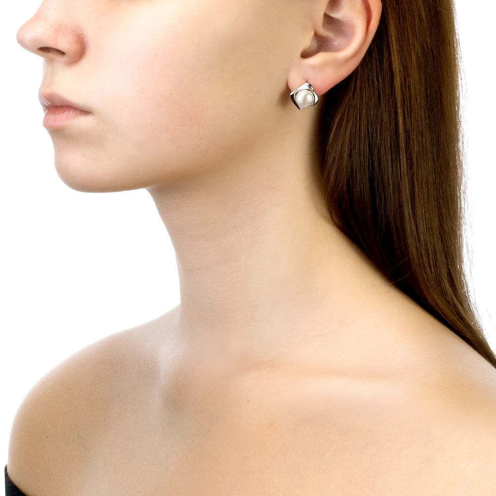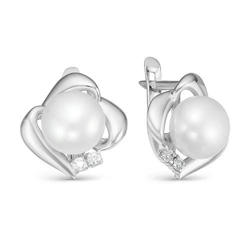 Серьги выполнены из серебра 925 пробы, украшены прекрасными белыми жемчужинами пресной воды. Высота серег — 1,5 см.