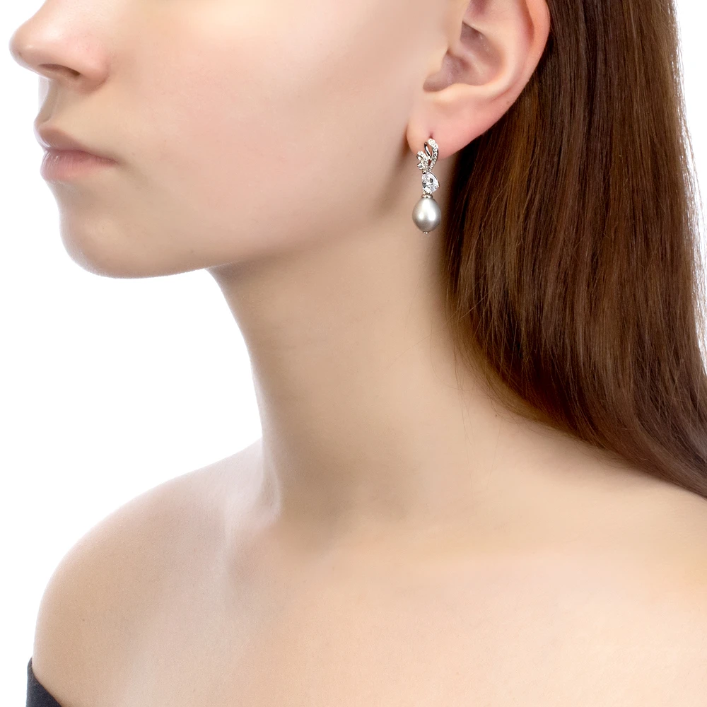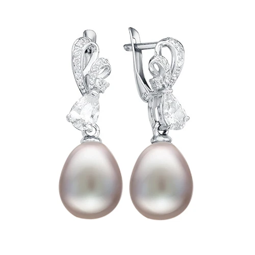 Серьги выполнены из серебра 925 пробы и украшены жемчужинами пресной воды. Качество жемчужин на серьгах наивысшее, жемчужины имеют очень яркий перламутровый блеск, поверхность без дефектов, форма жемчужин идеальная каплевидная.