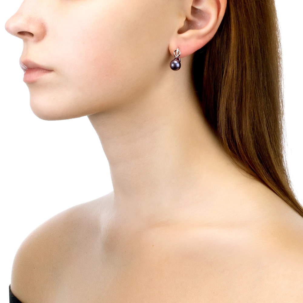 Серьги из серебра с черными речными жемчужинами 8,5-9 мм, (7224)