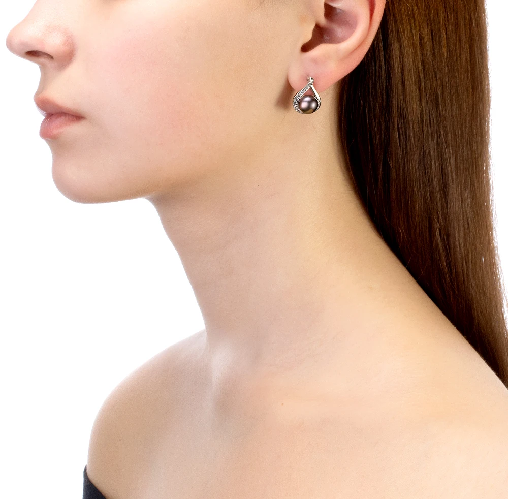 Серьги из серебра с черными речными жемчужинами 8,5-9 мм, (7233)