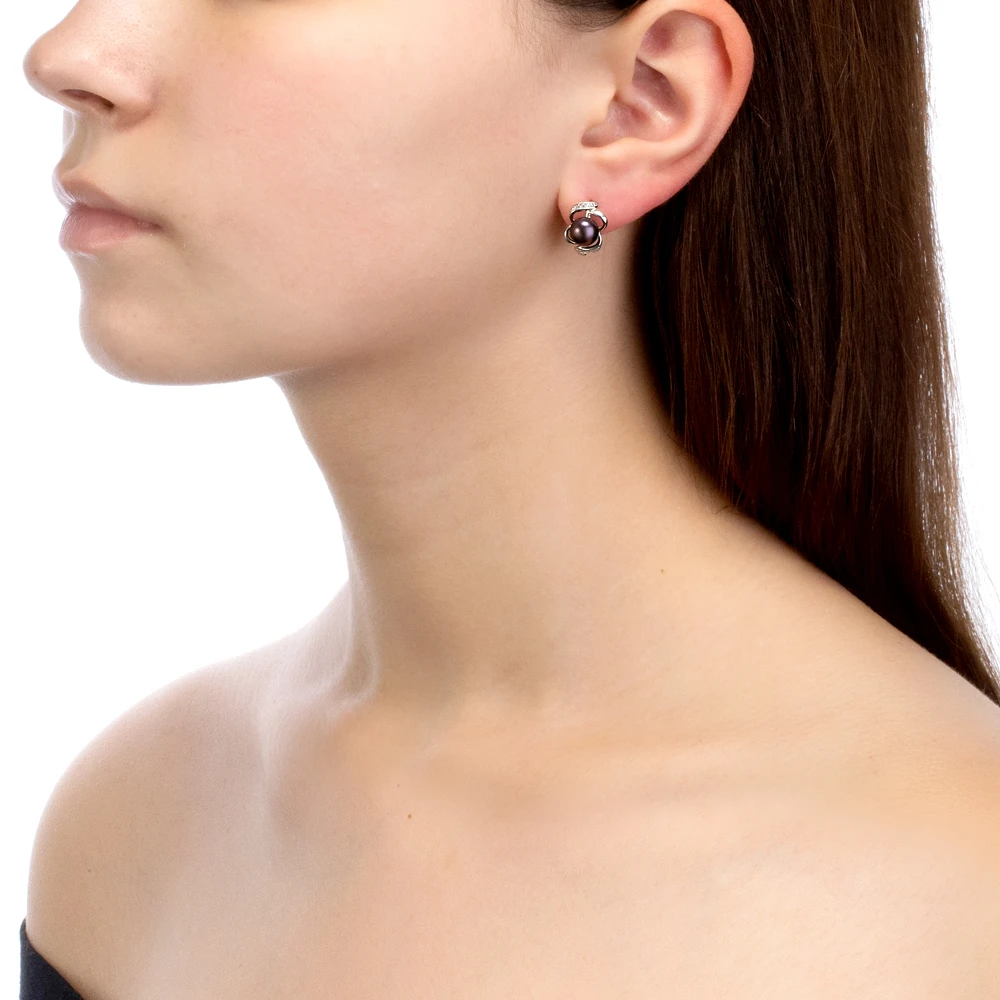 Серьги из серебра с черными речными жемчужинами 7-7,5 мм, (7237)