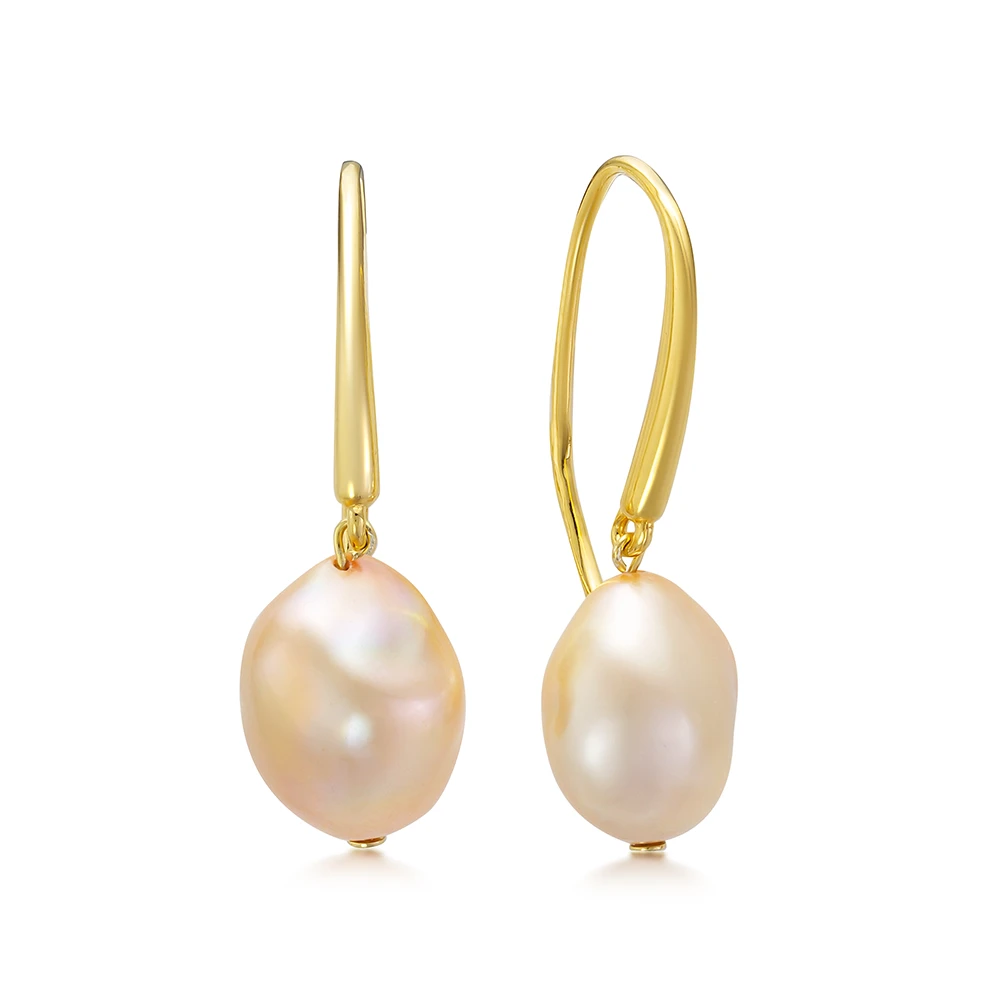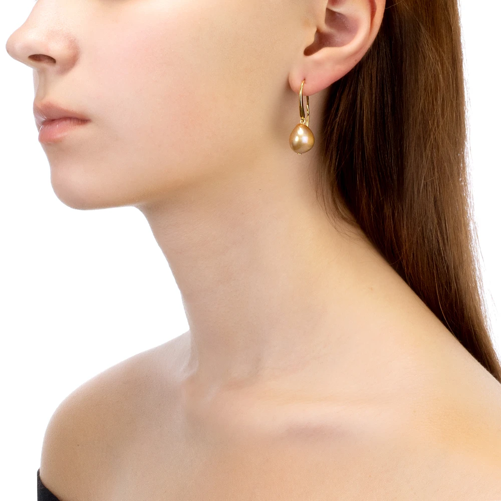 Эксклюзивные серьги выполнены из серебра 925 пробы, украшены золотистыми пресноводными жемчужинами "барокко".