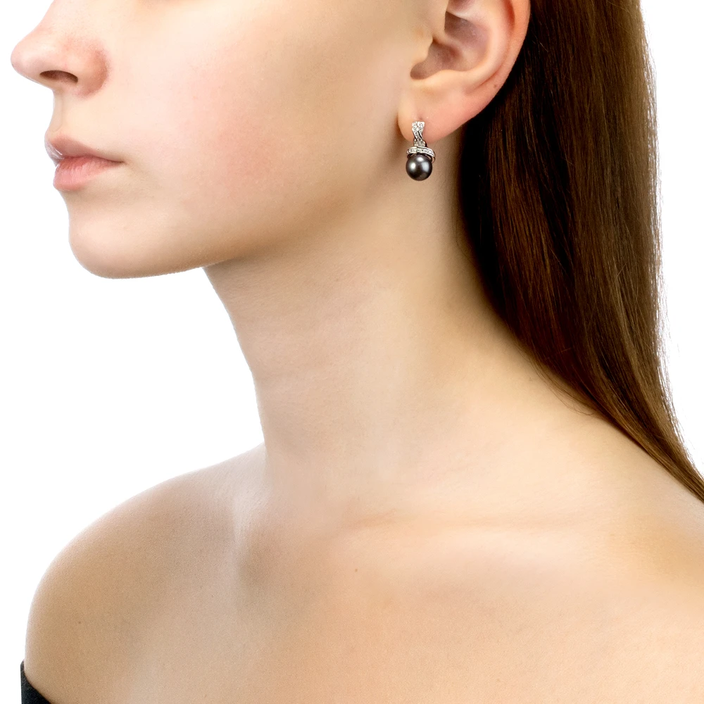 Серьги выполнены из серебра 925 пробы и украшены жемчужинами пресной воды. Качество жемчужин на серьгах наивысшее, жемчужины имеют очень яркий перламутровый блеск, поверхность без дефектов, форма жемчужин сплющенная (пуговица). В наличии есть серьги с жемчужинами различных оттенков черного цвета.