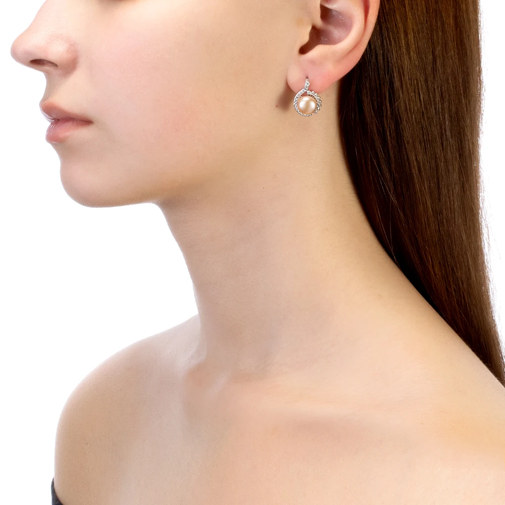 Серьги из серебра с розовыми речными жемчужинами 8,5-9 мм, (7240)