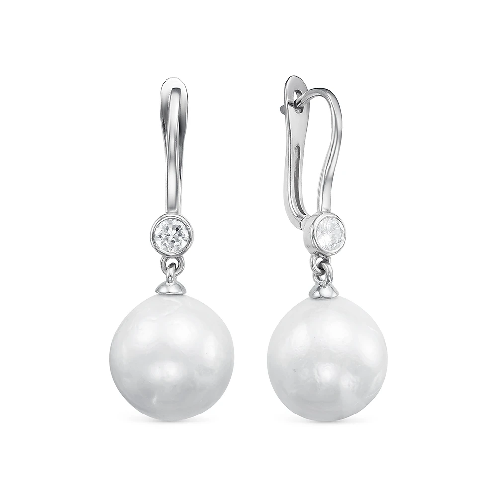 Серьги из серебра c белыми японскими речными жемчужинами 13-13,5 мм, (7293)