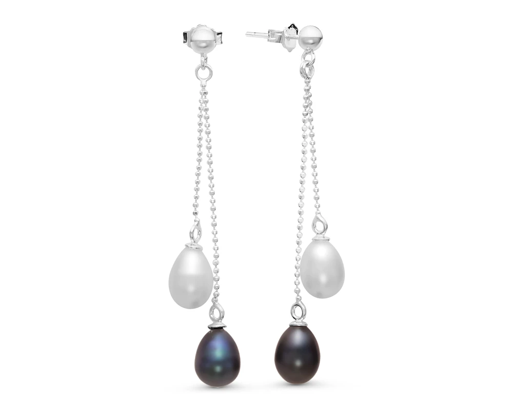 Серьги из серебра c белым и черным речным жемчугом 7,5-8 мм, (6148)