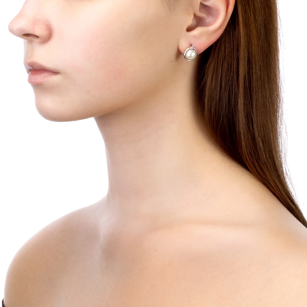 Серьги выполнены из серебра 925 пробы и украшены жемчужинами пресной воды. Качество жемчужин на серьгах наивысшее, жемчужины имеют очень яркий перламутровый блеск, гладкую, ровную поверхность, форма жемчужин сплющенная (пуговица).