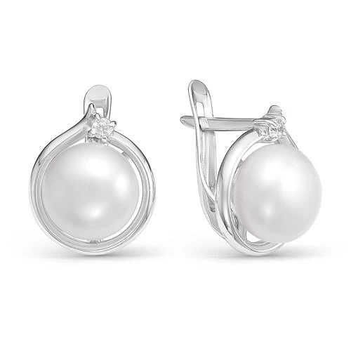 Серьги из серебра c белыми речными жемчужинами 8-8,5 мм, (3714)