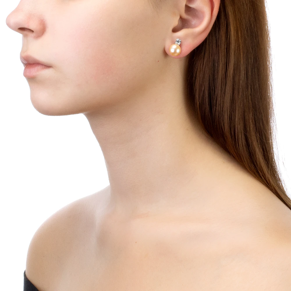 Серьги выполнены из серебра 925 пробы и украшены жемчужинами пресной воды. Качество жемчужин на серьгах наивысшее, жемчужины имеют очень яркий перламутровый блеск, поверхность без дефектов, форма жемчужин идеальная круглая. В наличии есть серьги с жемчужинами различных оттенков розового цвета.