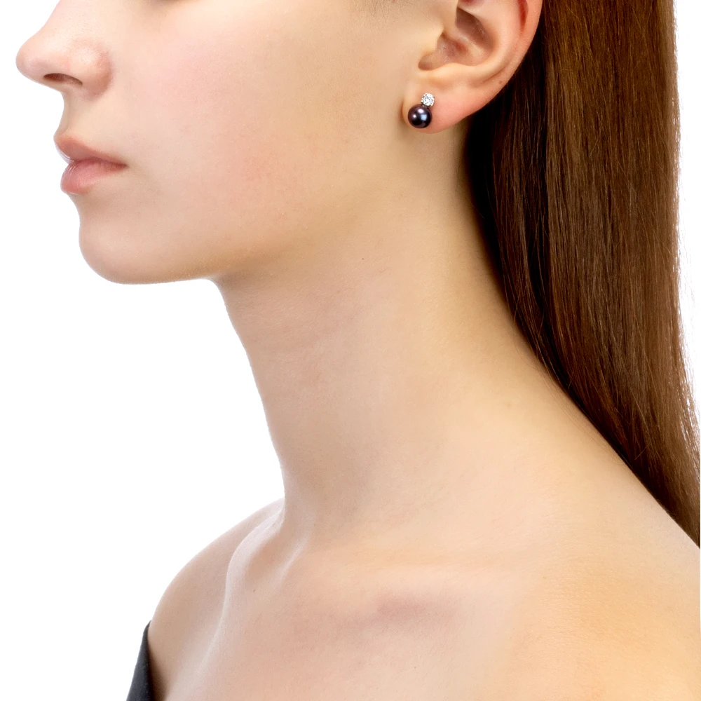 Серьги-гвоздики из серебра с черными речными жемчужинами 8-8,5 мм, (4304)