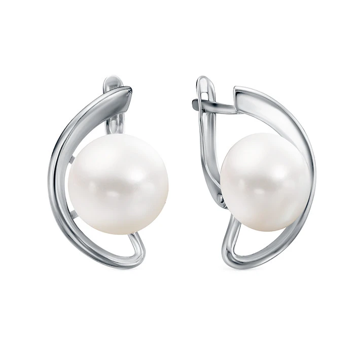 Серьги выполнены из серебра 925 пробы и украшены жемчужинами пресной воды. Качество жемчужин на серьгах наивысшее, жемчужины имеют очень яркий перламутровый блеск, гладкую, ровную поверхность, форма жемчужин сплющенная (пуговица).