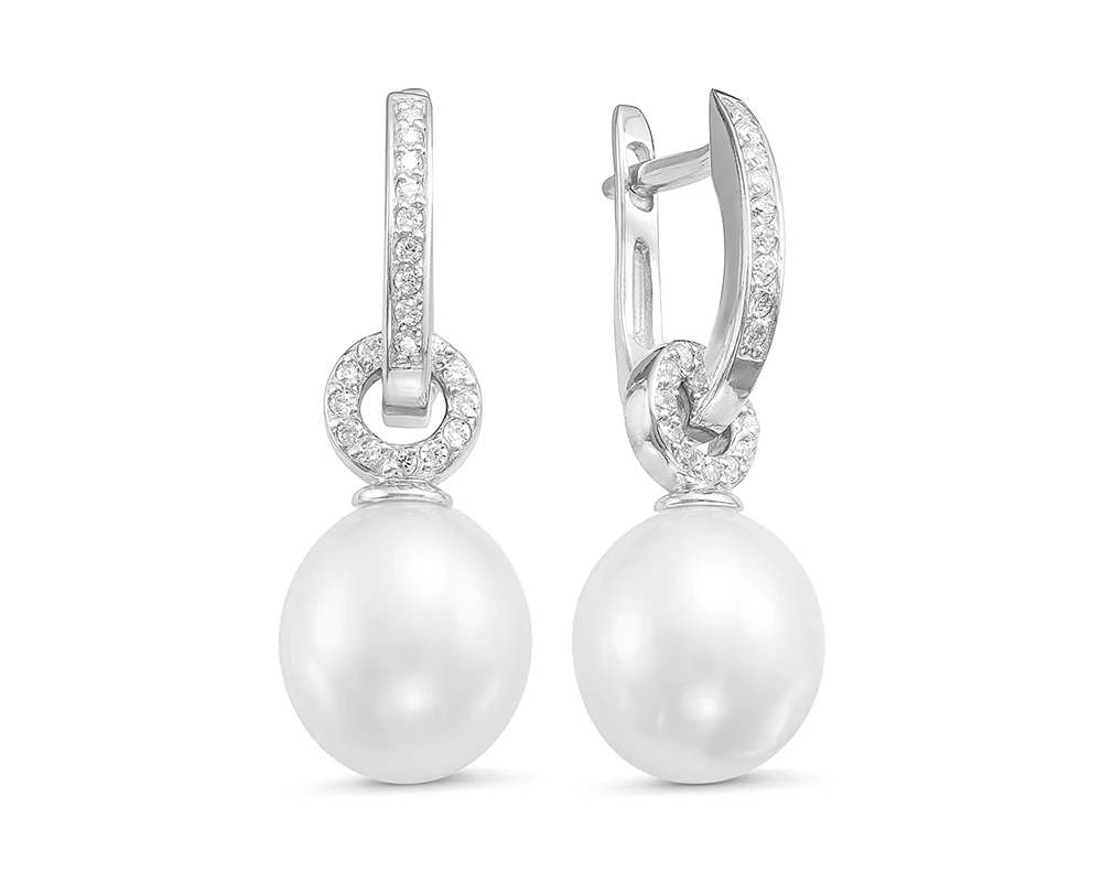 Серьги из серебра c белыми речными жемчужинами 9-10 мм, (5284)