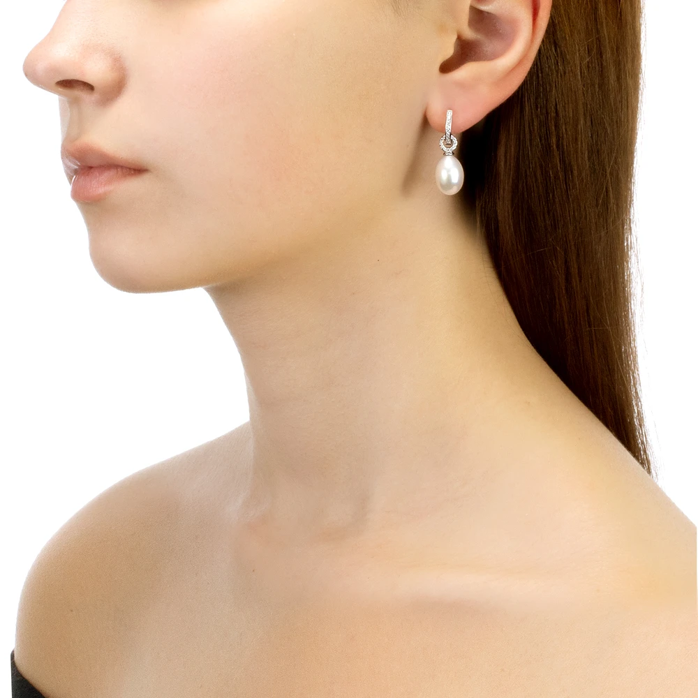 Эксклюзивные серьги-трансформеры выполнены из серебра 925 пробы и украшены жемчужинами пресной воды. Качество жемчужин на серьгах наивысшее, жемчужины имеют очень яркий перламутровый блеск, поверхность без дефектов, форма жемчужин идеальная каплевидная.
