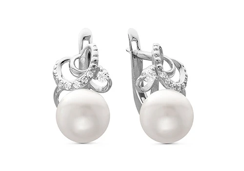 Серьги из серебра c белыми речными жемчужинами 7,5-8 м, (4016)