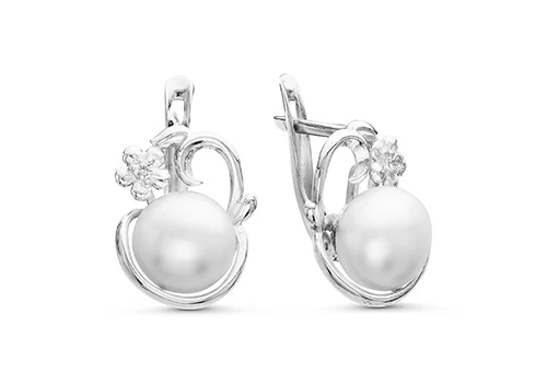 Серьги из серебра c белыми речными жемчужинами 7,5-8 мм, (3721)
