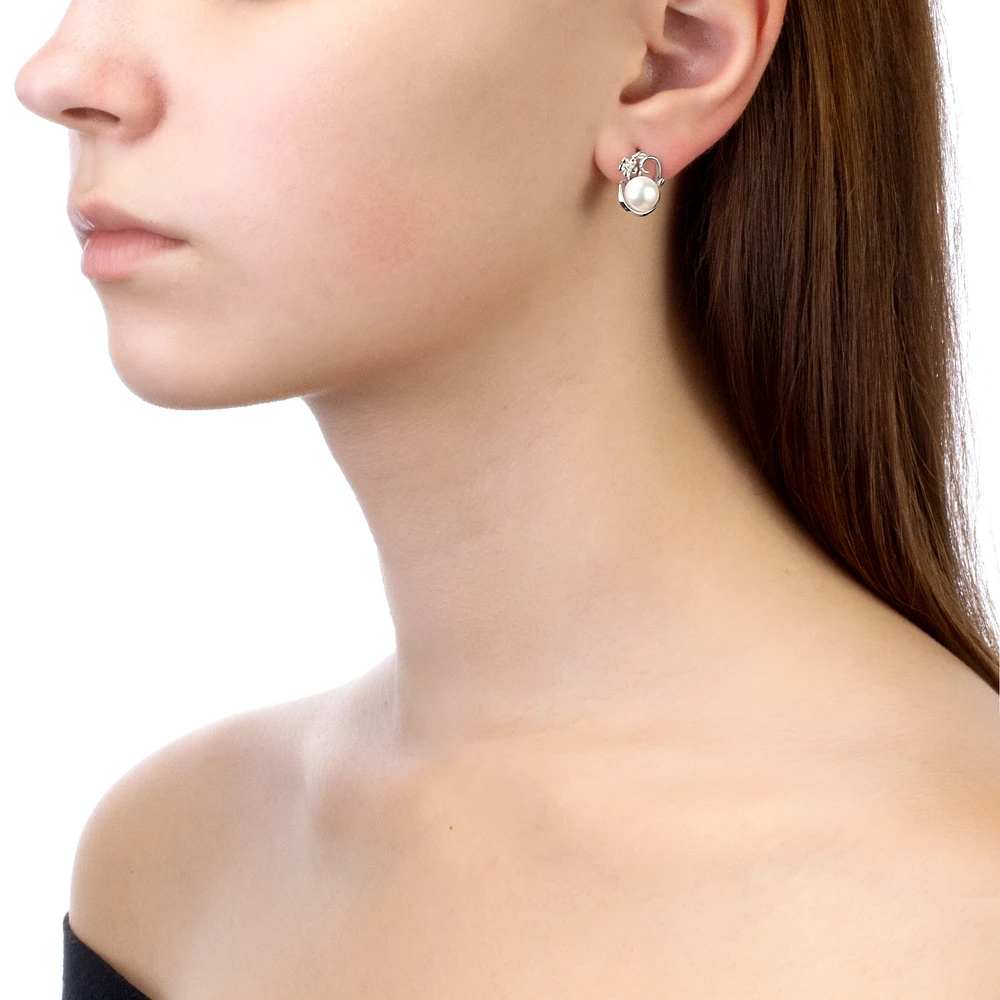 Серьги выполнены из серебра 925 пробы и украшены жемчужинами пресной воды. Качество жемчужин на серьгах наивысшее, жемчужины имеют очень яркий перламутровый блеск, гладкую, ровную поверхность, форма жемчужин сплющенная (пуговица).