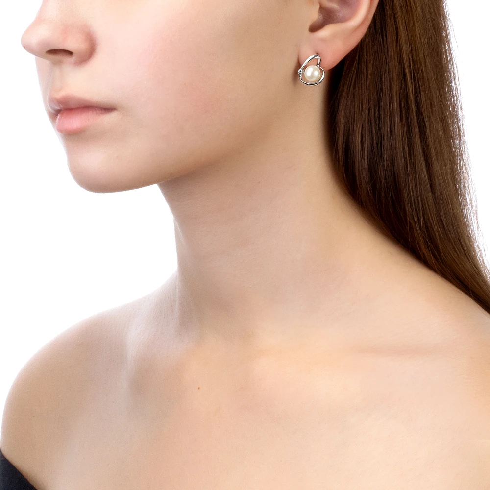 Серьги "Сердечки" из серебра c белыми речными жемчужинами 7,5-8 мм, (3798)