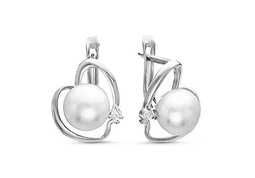 Серьги выполнены из серебра 925 пробы и украшены жемчужинами пресной воды. Качество жемчужин на серьгах наивысшее, жемчужины имеют очень яркий перламутровый блеск, гладкую, ровную поверхность, форма жемчужин сплющенная (пуговица).