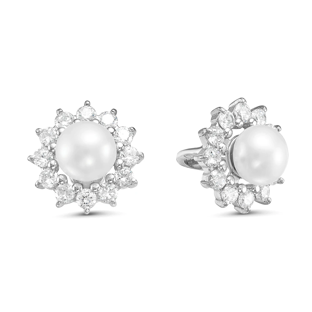 Серьги-гвоздики из серебра c белыми речными жемчужинами 7,5-8 мм, (5280)