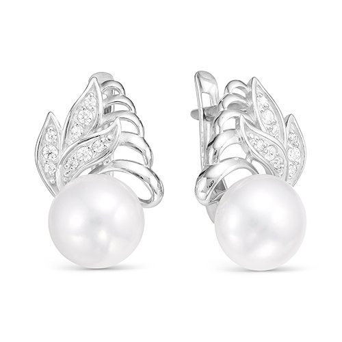 Серьги из серебра c белыми речными жемчужинами 8-8,5 мм, (1580)