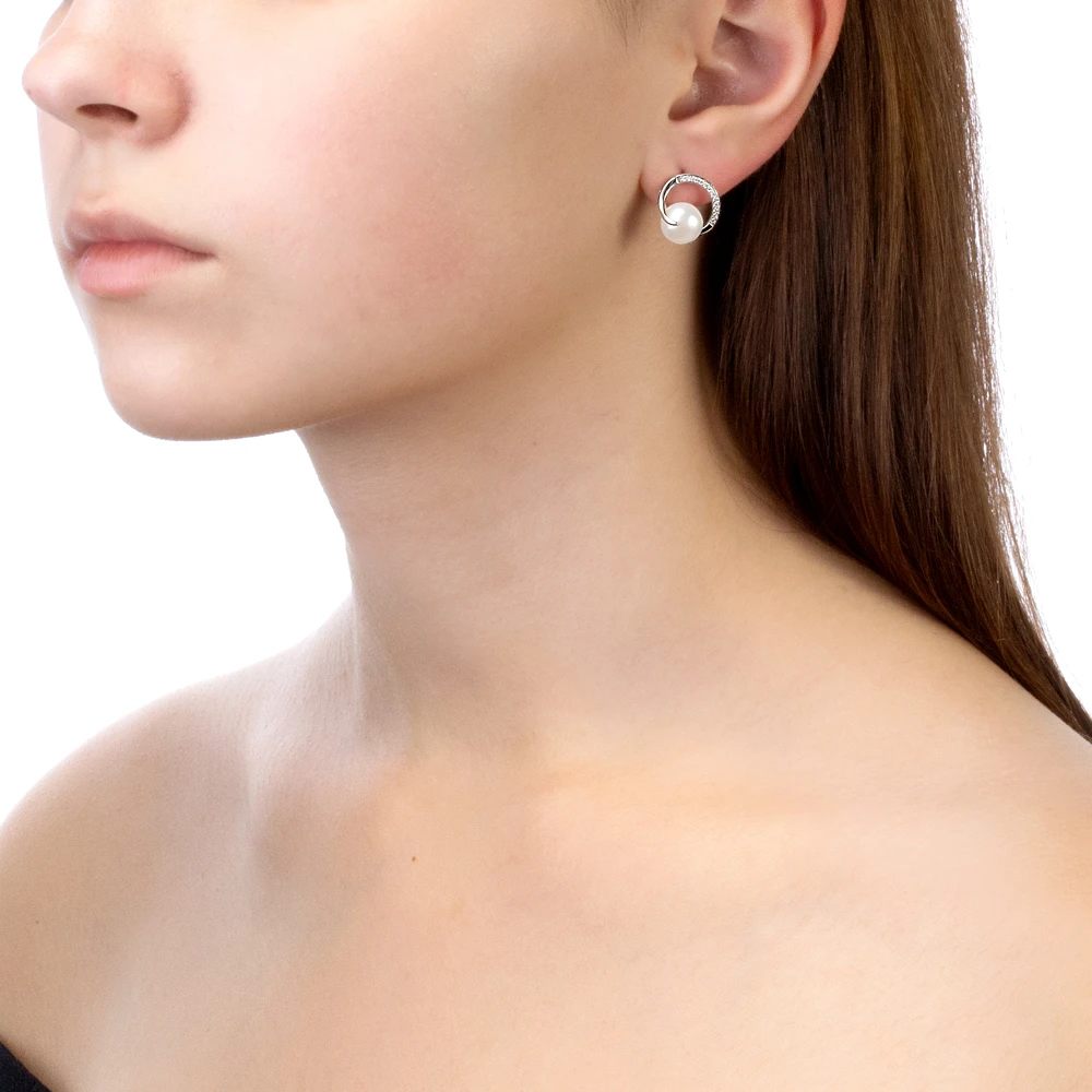 Серьги из серебра c белыми речными жемчужинами 8,5-9 мм, (3719)