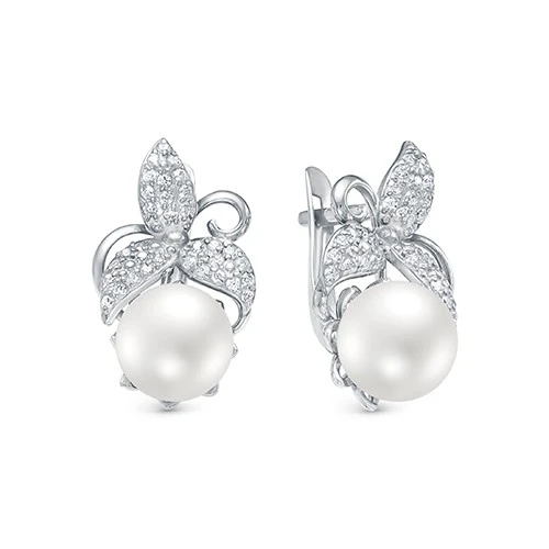 Серьги из серебра c белыми речными жемчужинами 9,5-10 мм, (3748)