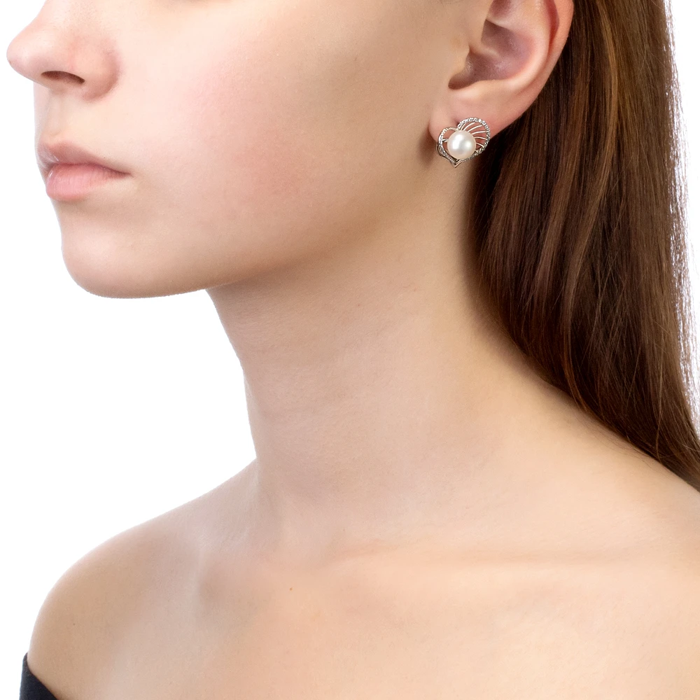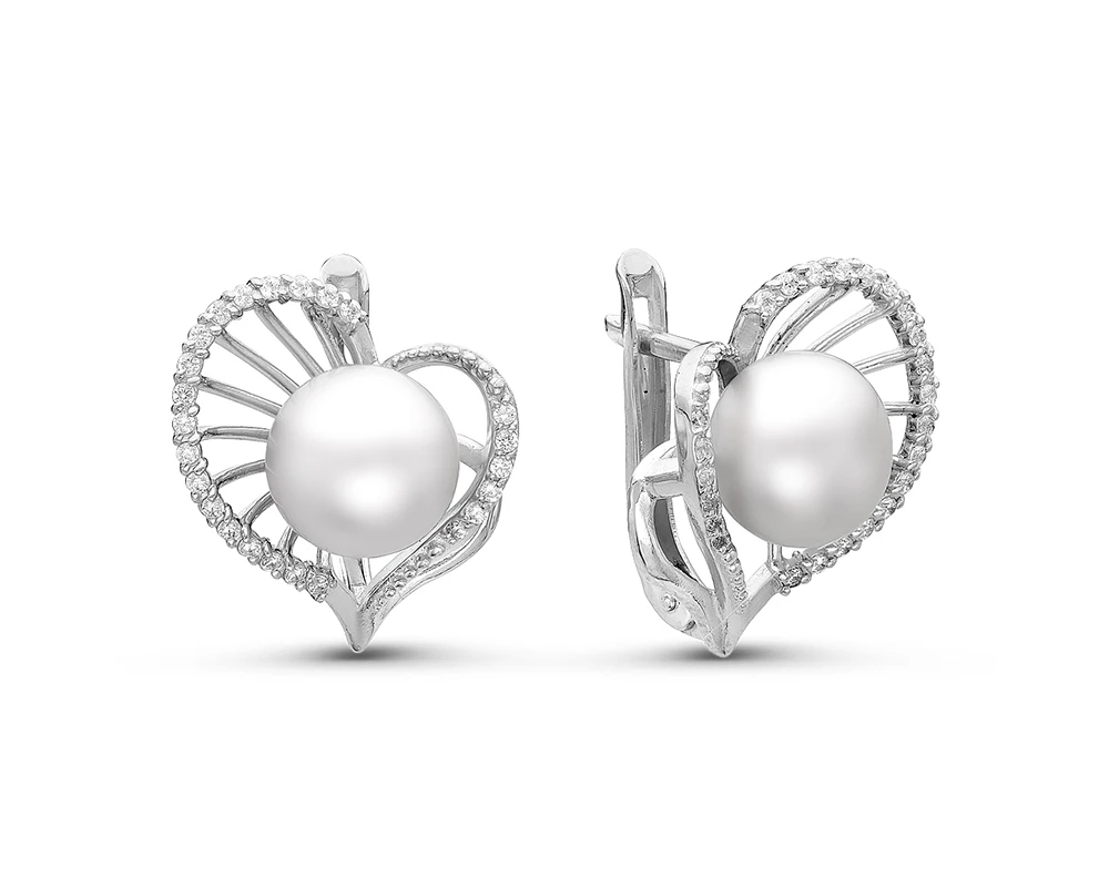 Серьги из серебра c белыми речными жемчужинами 8,5-9 мм, (5922)