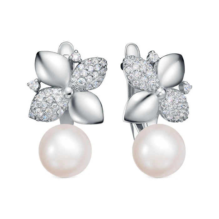Серьги из серебра c белыми речными жемчужинами 8,5-9 мм, (5278)