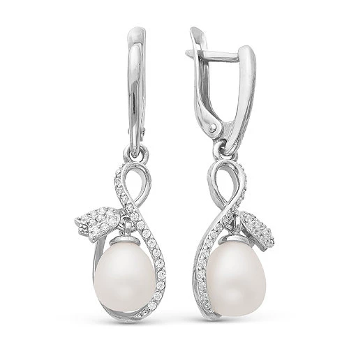 Серьги выполнены из серебра 925 пробы и украшены жемчужинами пресной воды. Качество жемчужин на серьгах наивысшее, жемчужины имеют очень яркий перламутровый блеск, поверхность без дефектов, форма жемчужин идеальная каплевидная.