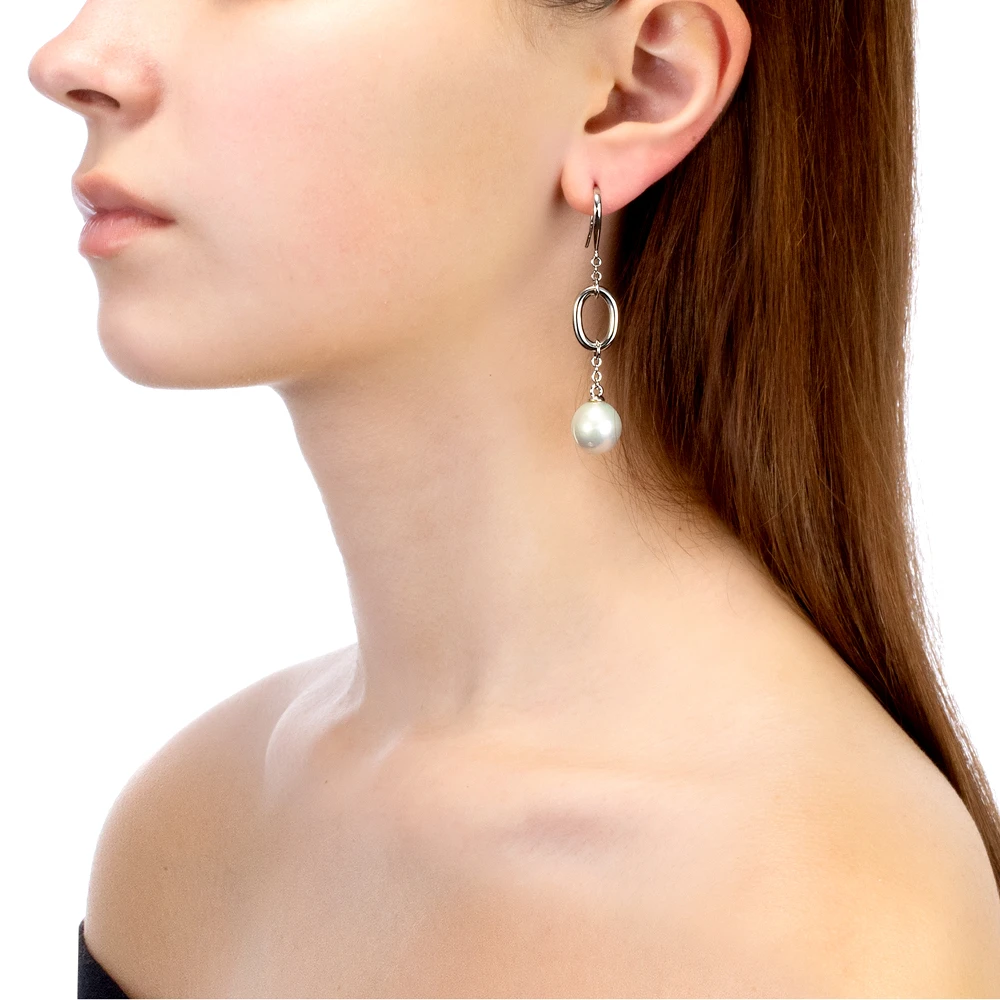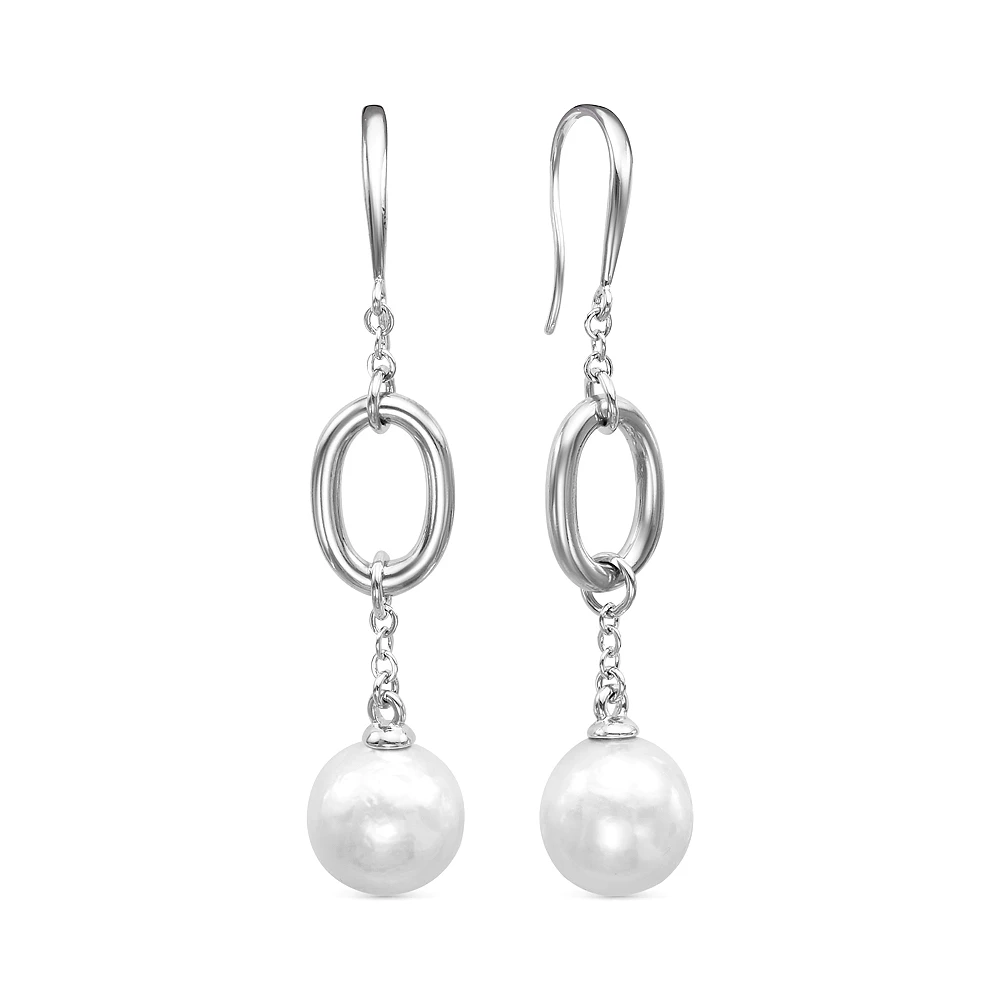 Серьги выполнены из серебра 925 пробы и украшены японскими жемчужинами пресной воды «Эдисон». Качество жемчужин на серьгах высокое, жемчужины имеют очень яркий перламутровый блеск, форма жемчужин круглая.